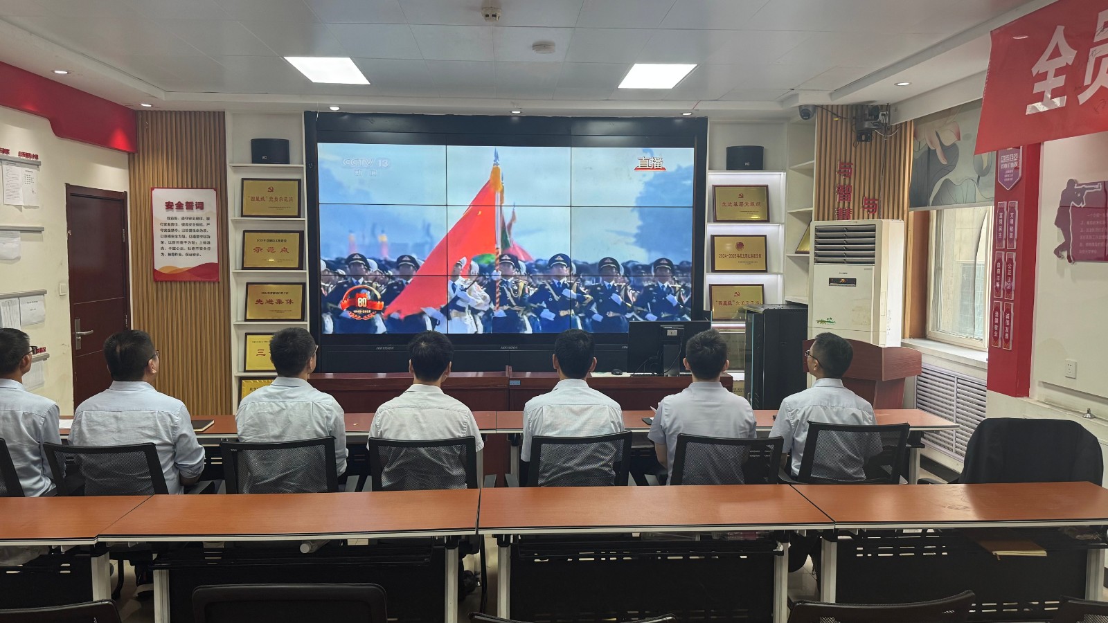 歷史燭照未來,精神永續(xù)傳承。為深切緬懷在抗日戰(zhàn)爭中英勇獻(xiàn)身的革命先烈,大力弘揚(yáng)偉大的抗戰(zhàn)精神,引導(dǎo)全體黨員、職工銘記光輝歷史、堅(jiān)定理想信念、強(qiáng)化責(zé)任擔(dān)當(dāng),9月3日,機(jī)運(yùn)工區(qū)黨支部組織開展了“銘記歷史偉業(yè),傳承紅色基因”主題黨日活動(dòng),組織全體黨員集中觀看紀(jì)念中國人民抗日戰(zhàn)爭暨世界反法西斯戰(zhàn)爭勝利80周年閱兵儀式現(xiàn)場直播。上午九時(shí)整,機(jī)運(yùn)工區(qū)全體黨懷著無比崇敬與激動(dòng)的心情,目光齊聚屏幕。伴隨著激昂雄壯的國歌奏響,鮮艷的五星紅旗在天安門廣場冉冉升起,大家心潮澎湃,肅然起敬。隨后,規(guī)模宏大、氣勢磅礴的閱兵式正式開始。屏幕上,一個(gè)個(gè)整齊劃一、威武雄壯的徒步方隊(duì),邁著鏗鏘有力、撼人心魄的步伐走過檢閱臺(tái),堅(jiān)毅的眼神、挺拔的身姿,充分展現(xiàn)了新時(shí)代軍人聽黨指揮的忠誠品格和能打勝仗的過硬本領(lǐng);一列列代表著國家科技實(shí)力與國防現(xiàn)代化建設(shè)最新成果的裝備方隊(duì),鐵流滾滾,氣勢如虹,尖端武器依次亮相,彰顯了捍衛(wèi)國家主權(quán)、安全、發(fā)展利益的堅(jiān)定決心與強(qiáng)大能力;雄鷹呼嘯,劃破長空,戰(zhàn)機(jī)編隊(duì)以精準(zhǔn)的隊(duì)形和磅礴的氣勢接受檢閱,描繪出壯美的藍(lán)天畫卷,宣示著捍衛(wèi)國家領(lǐng)空安全的鋼鐵意志。整個(gè)閱兵過程,秩序井然、威武雄壯、氣勢恢宏,生動(dòng)詮釋了人民軍隊(duì)“聽黨指揮、能打勝仗、作風(fēng)優(yōu)良”的強(qiáng)軍目標(biāo),全方位展示了在黨的堅(jiān)強(qiáng)領(lǐng)導(dǎo)下,國家日益強(qiáng)大的綜合國力和維護(hù)世界和平的堅(jiān)定信念。屏幕前,黨員們?nèi)褙炞ⅲ瑹o不被這震撼人心的場面所感染,民族自豪感與榮譽(yù)感油然而生,現(xiàn)場不時(shí)響起由衷的贊嘆和熱烈的掌聲。通過本次“銘記歷史偉業(yè),傳承紅色基因”主題黨日活動(dòng),機(jī)運(yùn)工區(qū)黨支部全體黨員經(jīng)歷了一次深刻的精神淬煉與思想升華。大家的歷史使命感、民族自豪感、崗位責(zé)任感得到顯著增強(qiáng),紛紛表示以更加飽滿昂揚(yáng)的精神狀態(tài)、更加求真務(wù)實(shí)的工作作風(fēng)、更加開拓創(chuàng)新的進(jìn)取意識(shí),恪盡職守,銳意進(jìn)取,全力以赴保障原煤運(yùn)輸安全高效,為工區(qū)及公司的持續(xù)高質(zhì)量發(fā)展貢獻(xiàn)全部力量!